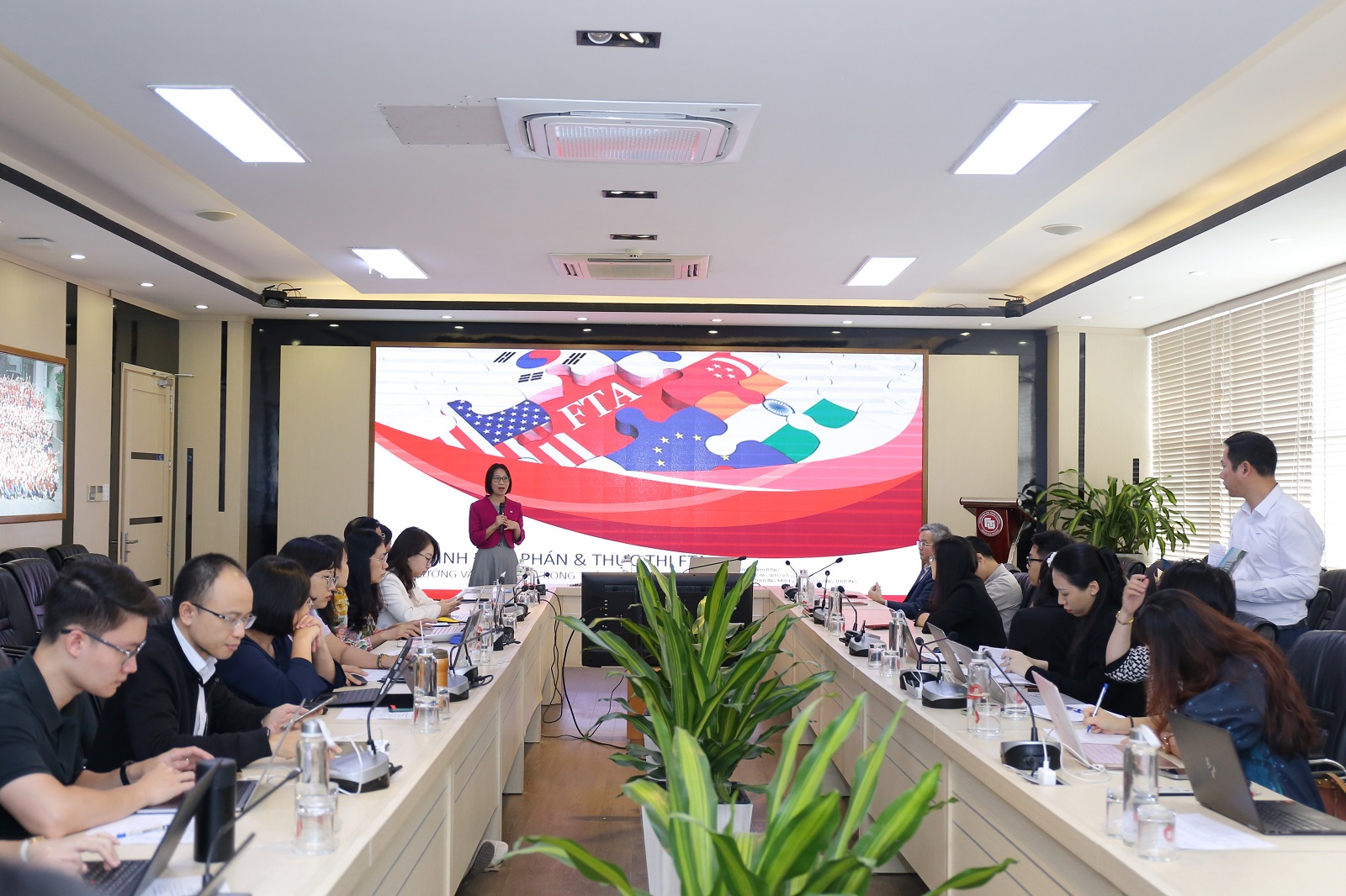 Học phần 1: Tổng quan về các Hiệp định thương mại tự do (FTA); tình hình đàm phán, ký kết, thực thi, định hướng và giải pháp giúp các doanh nghiệp tận dụng tối đa cơ hội từ các FTA do chuyên gia Vụ Chính sách thương mại đa biên, Bộ Công Thương trình bày;